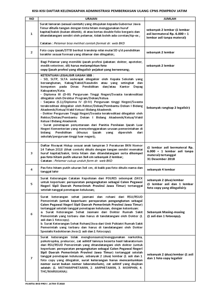 Surat lamaran cpnsd pemprov jatim tahun 2019 ke gubernur download 3. Tes skd cpns 2019 terdiri dari tiga jenis soal yakni tiu, tkp dan twk. Gunakan contoh soal spltv berikut untuk latihan. Dalam seleksi cpns 2019, pemprov jawa timur juga memberlakukan masa sanggah, yaitu waktu pengajuan sanggahan yang diberikan kepada pelamar untuk melakukan sanggahan terhadap pengumuman hasil. Pada postingan kali ini, soalcpns.org kali ini akan membagikan ebook bank soal cpns bentuk hots. Untuk lebih memahami tentang sistem persamaan linear tiga variable, berikut kami sajikan beberpa contoh soal spltv beserta jawaban dan pembahasannya. Contoh soal tes cpns pemprov jawa timur ada juga yang berbentuk aplikasi cat. Dengan maksud untuk membantu para calon peserta test, maka kali ini kita akan membahas contoh soal test cpns berikut ini. Para peserta seleksi calon pegawai negeri sipil (cpns) 2020 di jawa timur pun kini tengah menunggu hasil dari skd yang untuk mempermudah kamu mengecek pengumuman hasil skd cpns pemprov jatim melalui link yang akurat mungkin info di bawah ini bisa berguna untuk kamu. Soal cpns tkp (tes karakteristek pribadi) merupakan sebuah tes psikologi yang meneliti jenis dan karakter kepribadian para peserta cpns dalam berbagai aspek, termasuk aspek kognitif dan aspek emosi. Tes wawasan kebangsaan (twk) skd cpns 2019 jadi salah satu ujian yang menjadi momok. Simak dan pahami tata cara penyelesaiannya. Surat lamaran menjadi salah satu hal penting sebelum mengikuti seleksi.